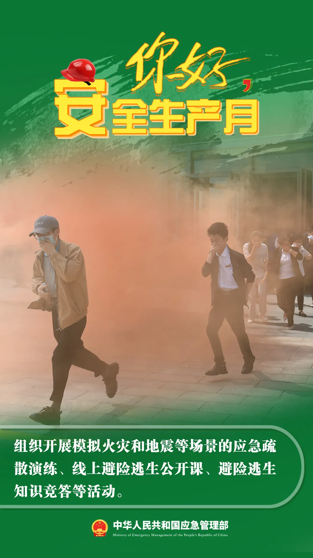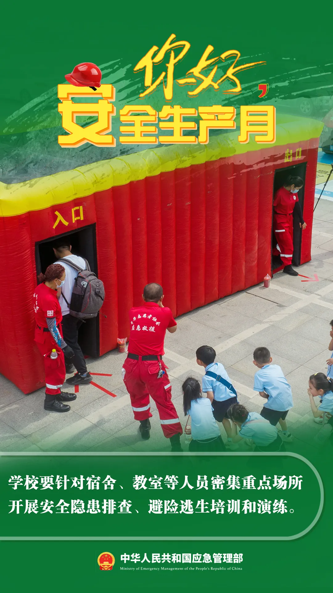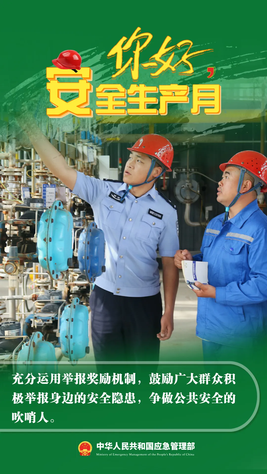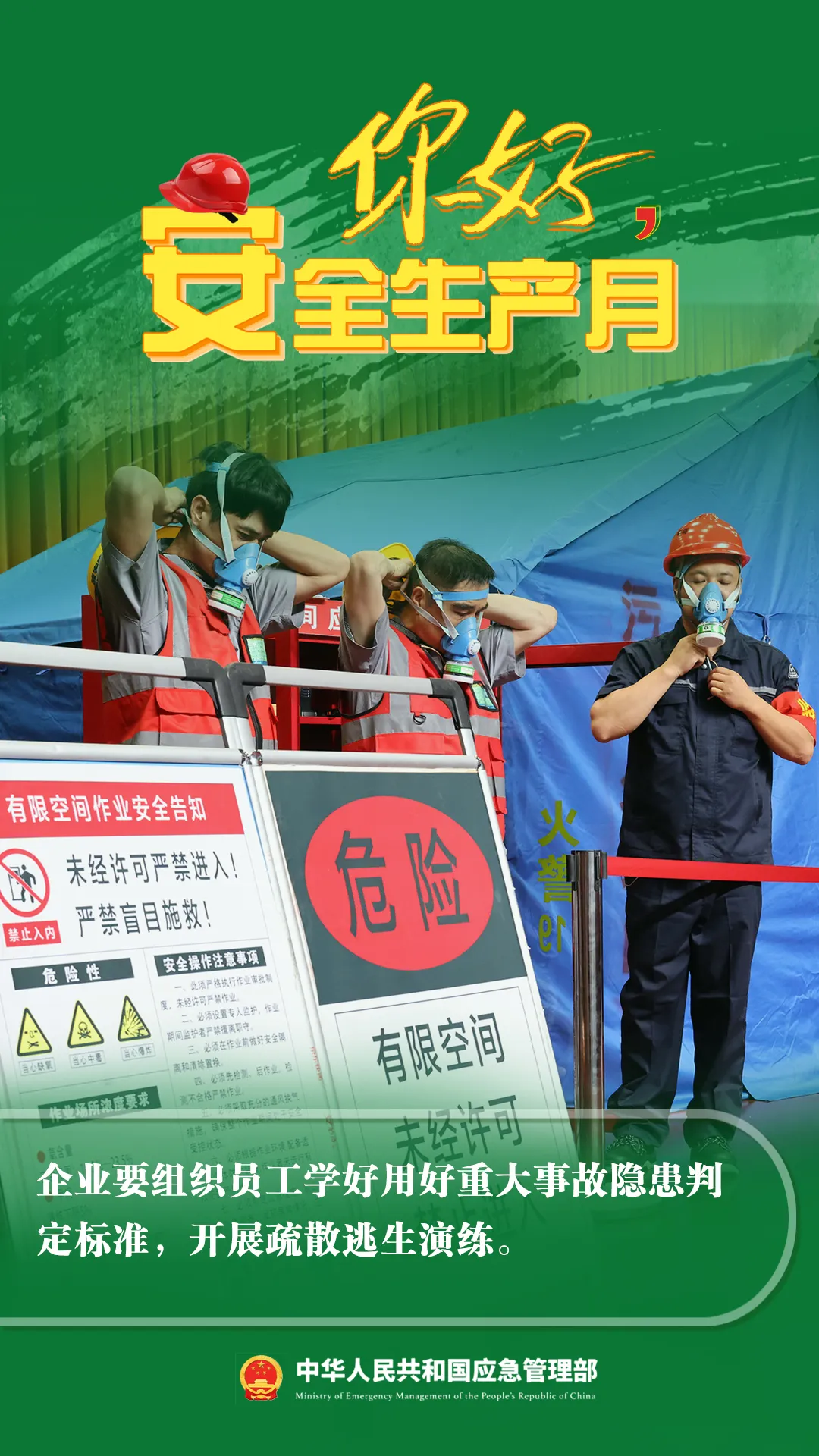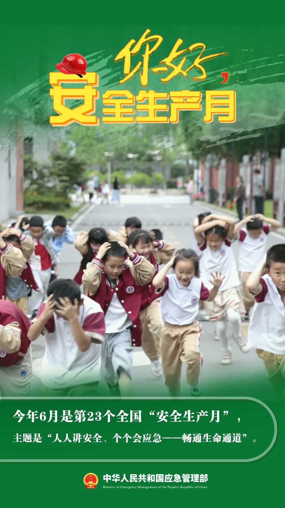 你好,安全生產(chǎn)月! 今年6月是第23個(gè)全國(guó)“安全生產(chǎn)月”主題是“人人講安全、個(gè)個(gè)會(huì)應(yīng)急——暢通生命通道”6月16日為全國(guó)“安全宣傳咨詢?nèi)铡?/span>安全家園你我共建今年全國(guó)“安全生產(chǎn)月”活動(dòng)有哪些要點(diǎn)?一起來看看來源:中華人民共和國(guó)應(yīng)急管理部